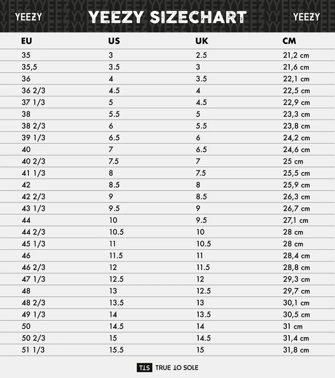 Yeezy Size Chart