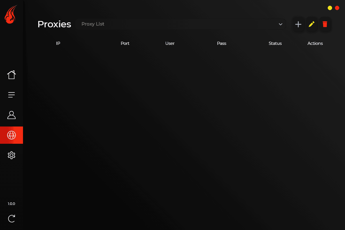 Another similarity to other pages is that there are 4 buttons that can be clicked – the first button (from the left) is a downward arrow which acts as a dropdown menu. From the dropdown menu, you can access existing proxy lists. The blue plus (+) button can be used to create a proxy list, the yellow pencil button can be used to edit a proxy list and the red trash button can be used to delete a proxy list. You can choose to edit or delete one or several proxy lists at one time when you wish to do so. When creating a proxy list, using the blue plus button, you will be prompted to add a name for the proxy list – it makes sense to choose a name that makes the proxy list easy to recognise as you may have several at one time – and you will have to paste the list of your proxies too. Now, the developers have made it so that only a certain format of proxies will be accepted. Follow this format to make sure that your proxies will work after you paste them in – ‘ip:port:user:password & ip:port’. Beware that any other format of proxies will not work so make sure to keep this in mind. Once you have created a proxy, it will appear on the screen with its properties being listed in a table. The columns of the table are IP, Port, User, Pass, Status and Actions. One column that will come in use quite often is the ‘Actions’ column that is located furthest to the right; this column features a green triangle that can be used to run and test your proxies. There are two results that you may get after pressing the green triangle button – the first is that the proxy works, which is shown by a green status, and the other is an error message.