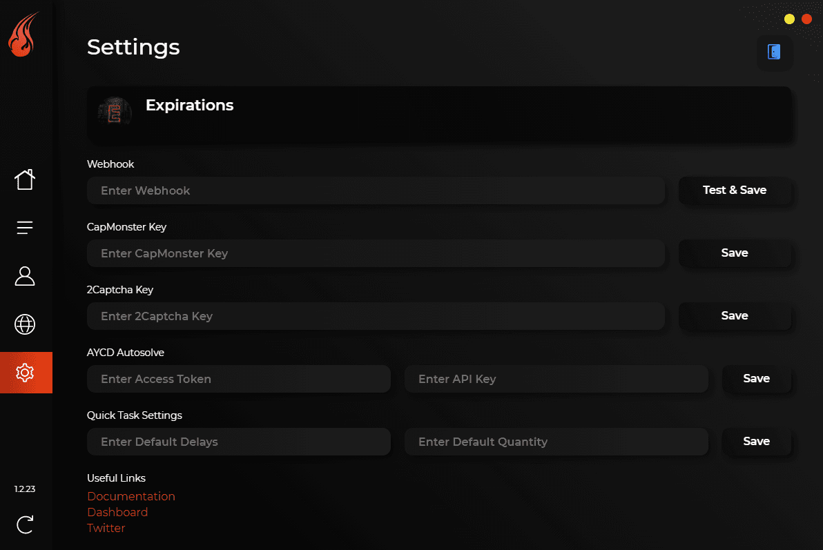 The final page that can be accessed through the sidebar is the Settings page. Through the settings page of eStock, you can input your web hook, 2 Captcha Key, AYCD Auto solve tokens and input quick task settings too. You can also deactivate your key from the settings page too; simply hop over to the #commands channel and type the command ‘-reset’ in. This will allow you to successfully deactivate your key and the benefit of this is that you can now use the same key to access eStock from a different machine.