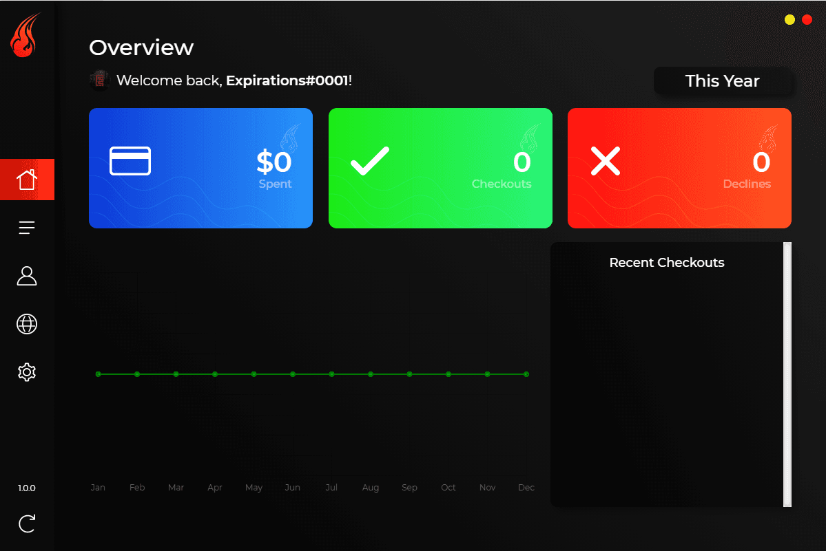 Another reason why the bot is so popular is that it pairs a host of websites that aren’t usually supported by AIO bots with a clean, simple User Interface (UI). The UI is simple to navigate and isn’t too complicated and this is why it is described as a good bot for beginners too. The main page of the bot is known as the ‘Overview’ page; from this page, you can access all the other areas of the bot. The main purpose of the Overview Page is to house statistics about checkouts. What you will notice is that the Overview page features 3 cards – one of a blue color, one of a yellow color and one of a red color. The blue card, which is on the left of the Overview page, shows how much money (in US Dollars) has been spent through the bot. The green card, which is in the center of the screen when you open the overview page, highlights the number of successful checkouts that have been carried out using eStock. As you can probably work out, the red card (which is located on the right of the screen), highlight the number of failed checkouts. When using the bot, you can almost be sure that the number on the green card will outweigh the number on the red cardboard the success rate is pretty good. Most bots don’t outline how many failed checkouts that have taken place and thus, it is good to see that the bot is being transparent with their statistics. The lower half of the ‘Overview’ page features a graph of recent checkouts; the graph will outline the same statistics as the green and red cards on the same page but will do this visually.