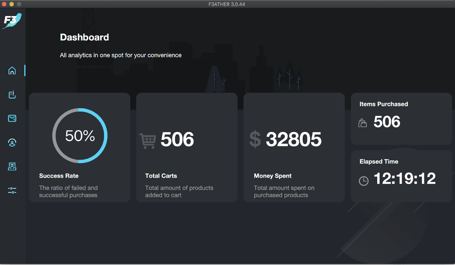 Within the bot, it's jam-packed with exciting features. Some of these include the bot's overall success rate, total carts, money spent, items purchased, and time that the bot has been running.