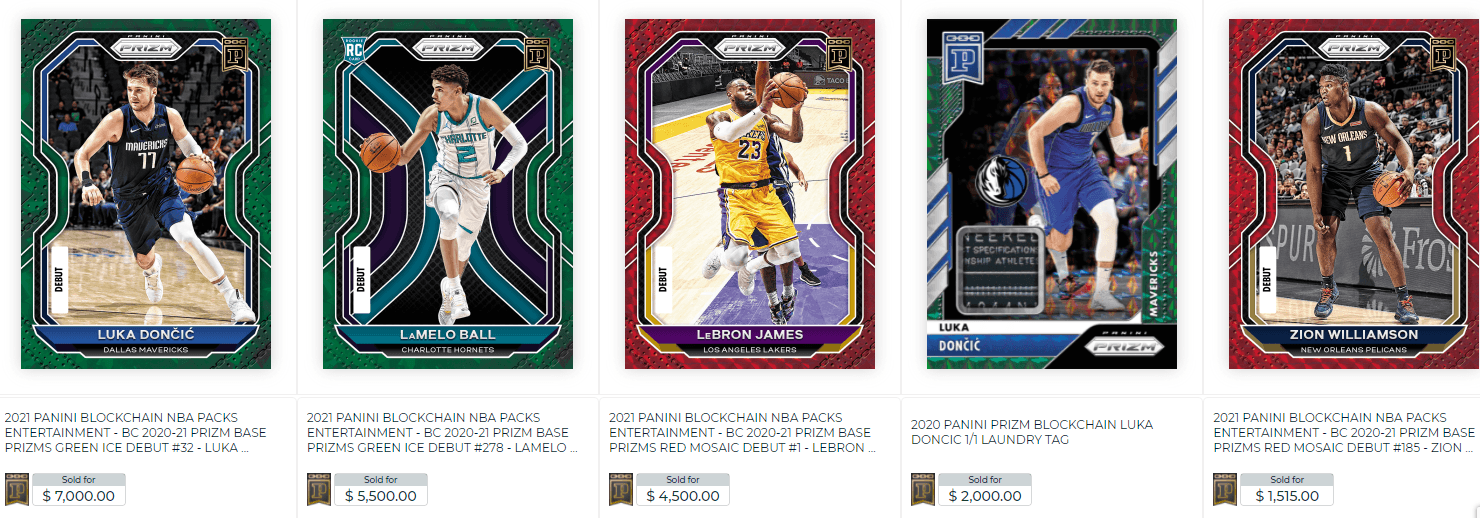 Panini NFTs have been a big hit so far for Prizm. Their Prizm releases have included a red and green debut pack, a silver prizm pack, a Net Marvels pack, and they have more on the way. Some of these NFT cards have sold for big money.